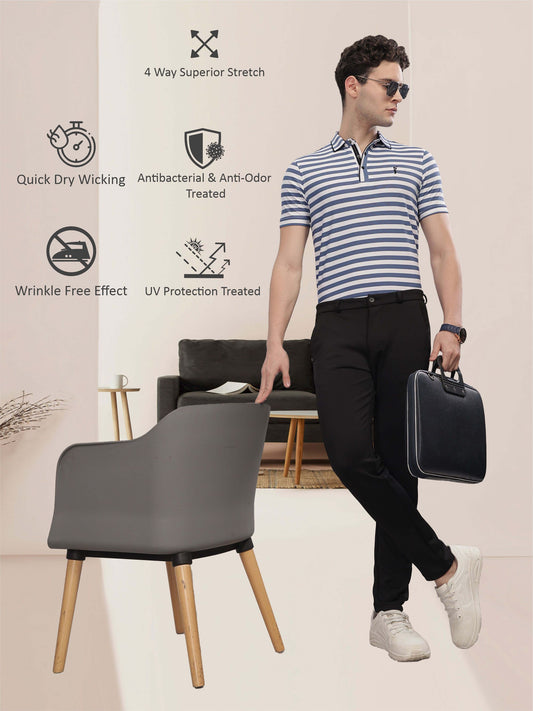 Deep Purple Men's Stripes Polo T-Shirt | Quick Dry | Stretchable | UV Protected | Wrinkle & Odour-Free