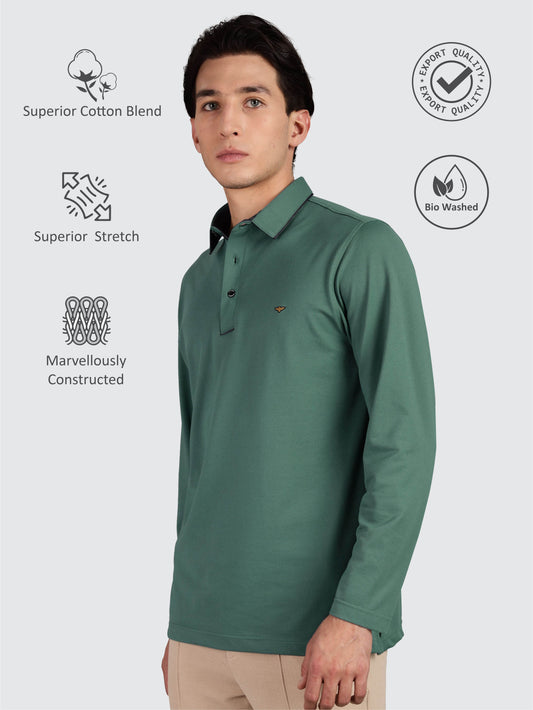 Men's Full Sleeve Soft Berry PQ Polo T shirt - Green