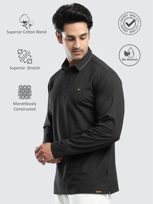 Men's Full Sleeve Polo T-Shirt-DarkGrey| Feather Touch Feel | Odour Resistant | Wrinkle Free | Quick Dry | Stretchable | Anti-Static | UV Resistance |