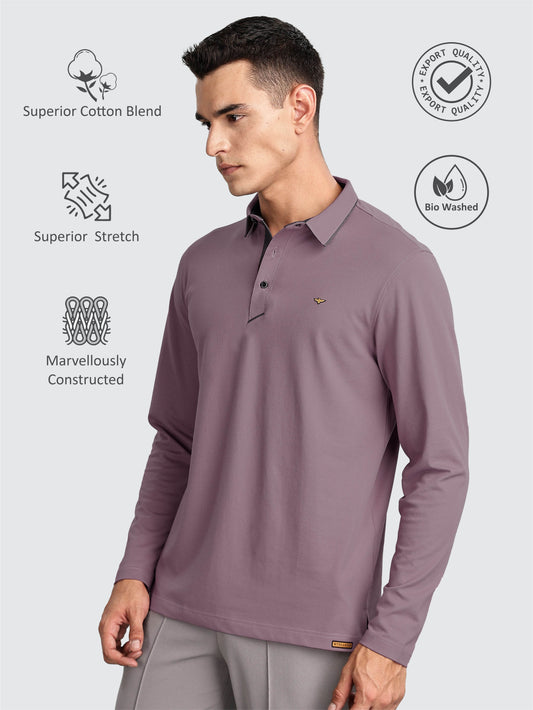 Men's Full Sleeve Soft Berry PQ Polo T-Shirt-Mauve