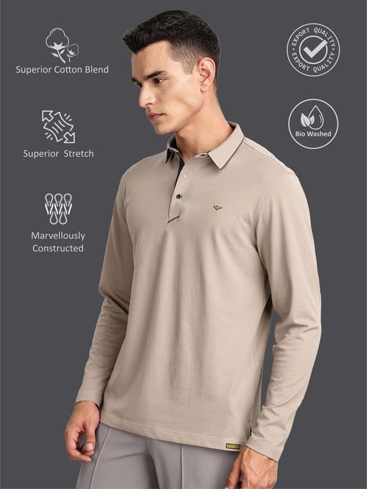 Men's Full Sleeve Polo T-Shirt | Feather Touch Feel | Odour Resistant | Wrinkle Free | Quick Dry | Stretchable | Anti-Static | UV Resistance |