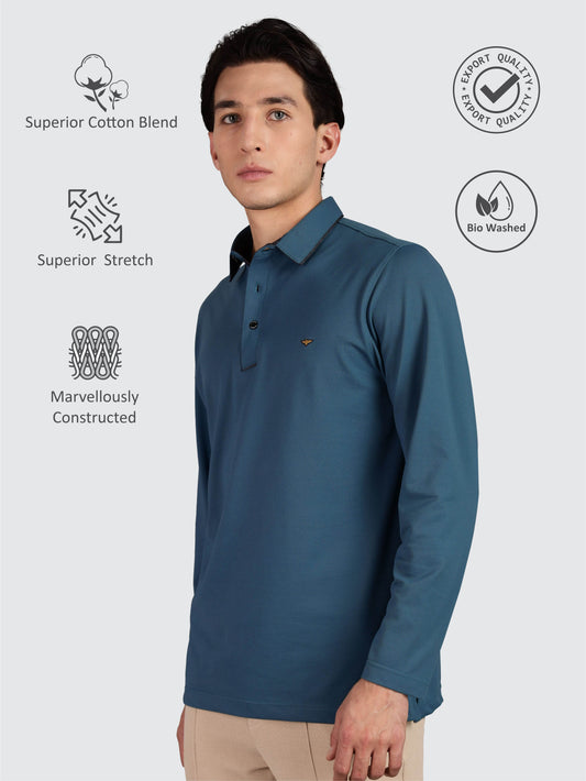 Men's Full Sleeve Polo T-Shirt-Teal Blue| Feather Touch Feel | Odour Resistant | Wrinkle Free | Quick Dry | Stretchable | Anti-Static | UV Resistance |