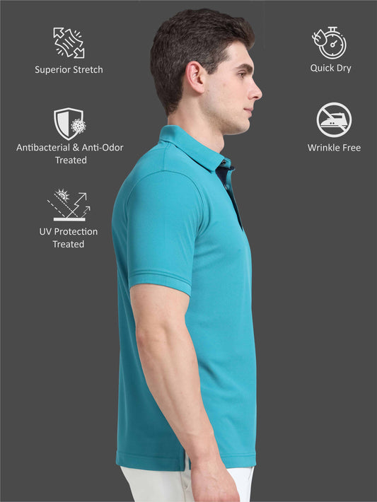 Men Teal Green Premium Golf Polo T-Shirt | Quick Dry | Stretchable | UV Protected | Wrinkle & Odour-Free