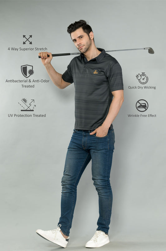 Men Dark Grey Golf Polo T-Shirt | Quick Dry | Stretchable | UV Protected | Wrinkle & Odour-Free