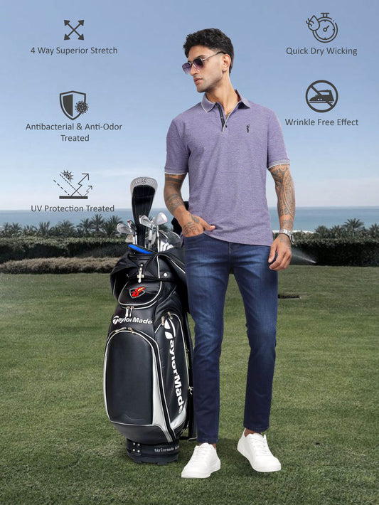 Purple Mist Mens Tipping Polo T-Shirt | Quick Dry | Stretchable | UV Protected | Wrinkle & Odour-Free