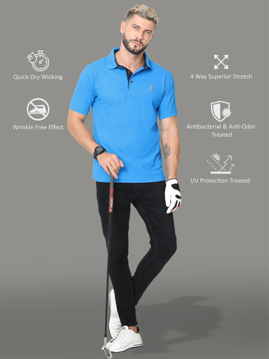 Men Dresden Blue Premium Golf Polo T-Shirt | Quick Dry | Stretchable | UV Protected | Wrinkle & Odour-Free