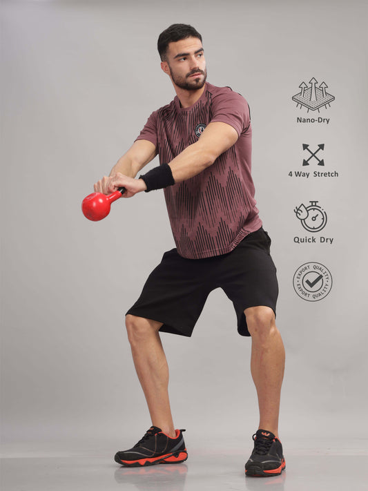 Mauve Mens Printed Round Neck Active Wear T-Shirt