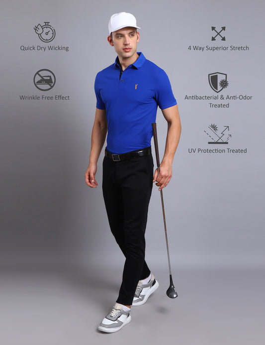 Men Royal Blue Premium Golf Polo T-Shirt | Quick Dry | Stretchable | UV Protected | Wrinkle & Odour-Free