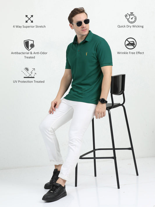 Men Jade Green Signature Golf Polo T-Shirt | Quick Dry | Stretchable | UV Protected | Wrinkle & Odour-Free