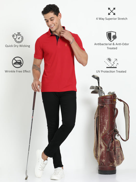 Men Red Premium Golf Polo T-Shirt | Quick Dry | Stretchable | UV Protected | Wrinkle & Odour-Free