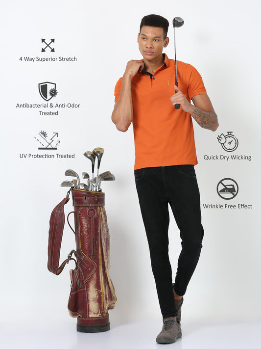 Men Russet Premium Golf Polo T-Shirt | Quick Dry | Stretchable | UV Protected | Wrinkle & Odour-Free