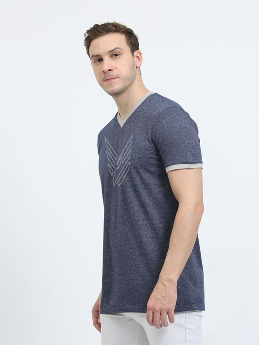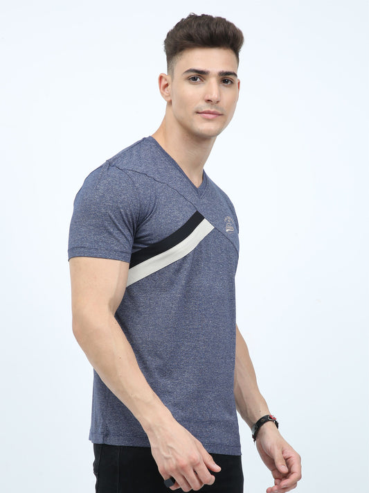 Navy Blue Men's Cotton V-Neck T-Shirt