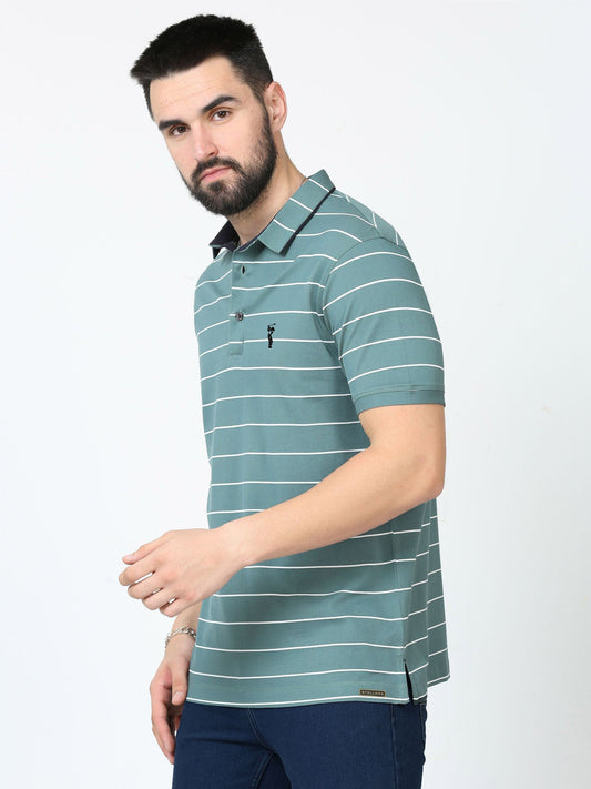 Pastel Green Mens Rolex Stripes Polo T-Shirt