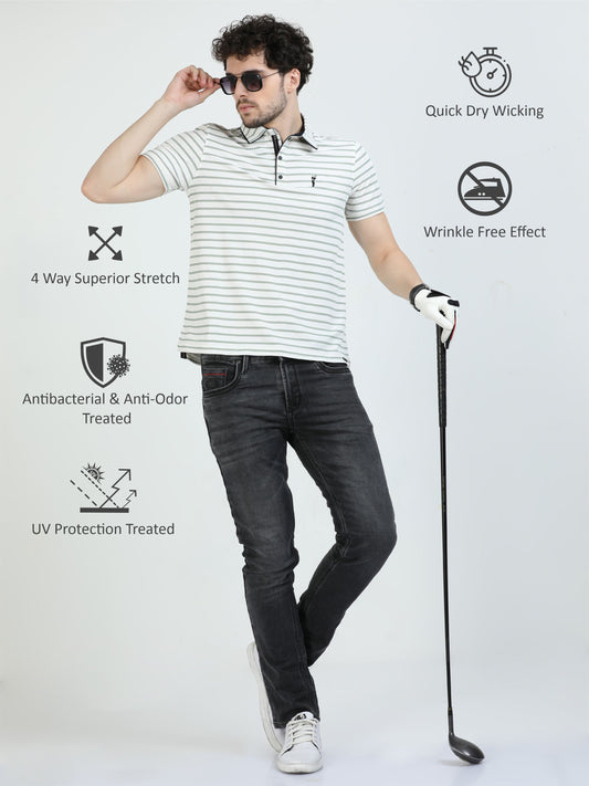 Jade Green Men's Barcode Weave Golf Polo T-Shirt
