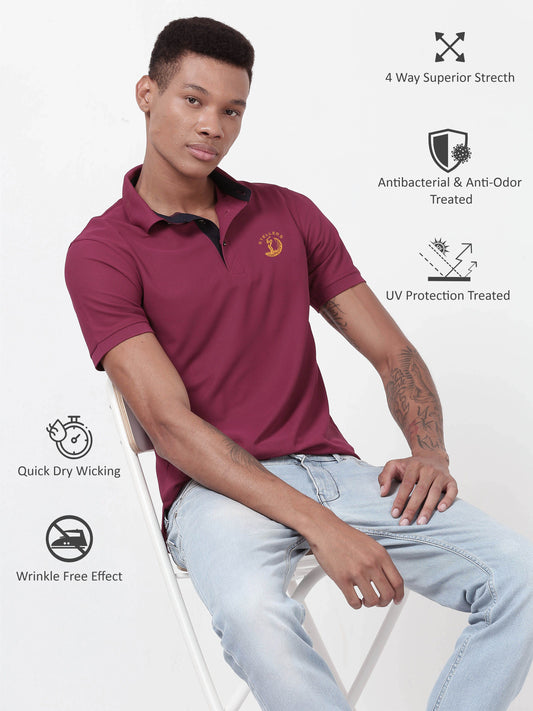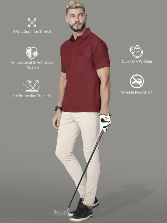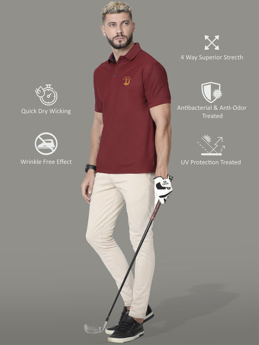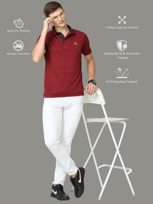 Maroon Men's Barcode Weave Golf Polo T-Shirt