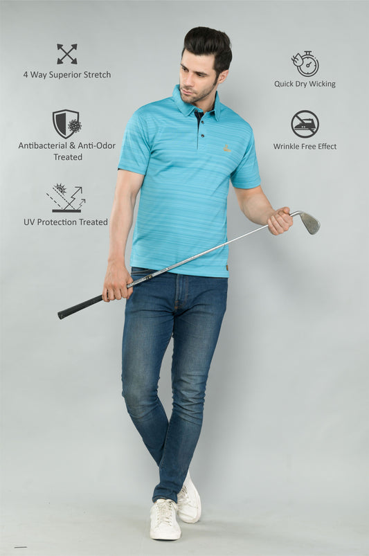 Sold outTeal Blue Men's Stripes Polo T-Shirt