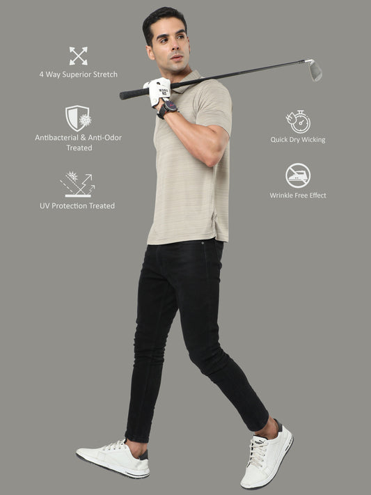 Moose Grey Men's Barcode Weave Golf Polo T-Shirt