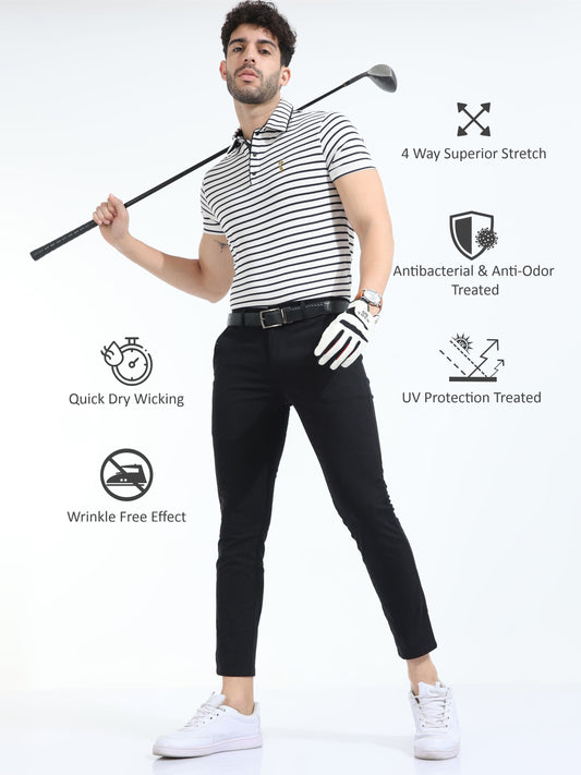 Men Premium Ultra Stripes Polo T-Shirt - Black | Feather Touch Feel | Light Weight | Stretchable | Sustainable