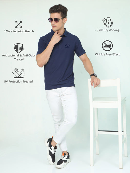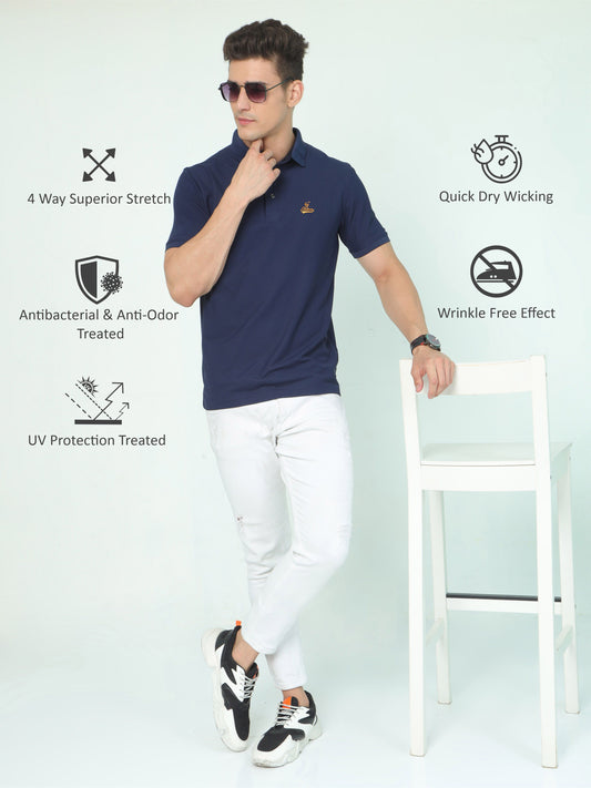 Men Premium Ultra Stripes Polo T-Shirt - Navy Blue | Feather Touch Feel | Light Weight | Stretchable | Sustainable