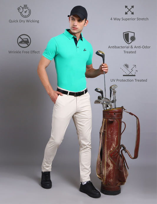 Men Premium Ultra Stripes Polo T-Shirt - Aqua Green | Feather Touch Feel | Light Weight | Stretchable | Sustainable