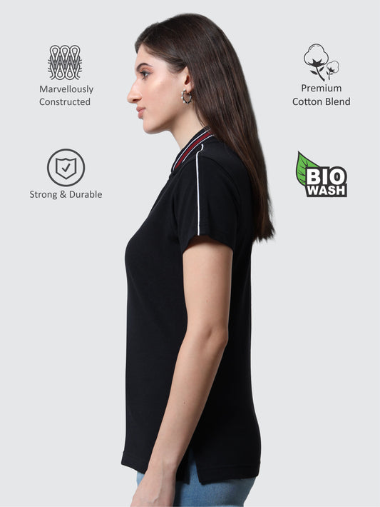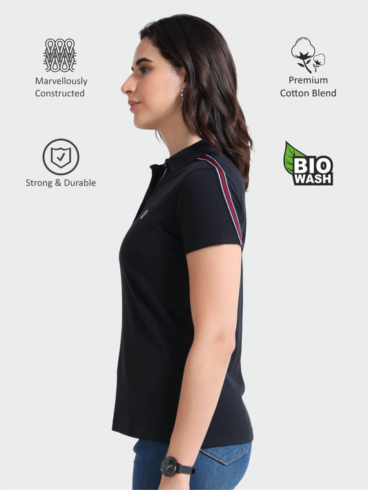 Women Black Regular Fit Polo T-shirt | Premium Cotton | Stretchable | Feather touch feel | Sustainable | Breathable | Light Weight