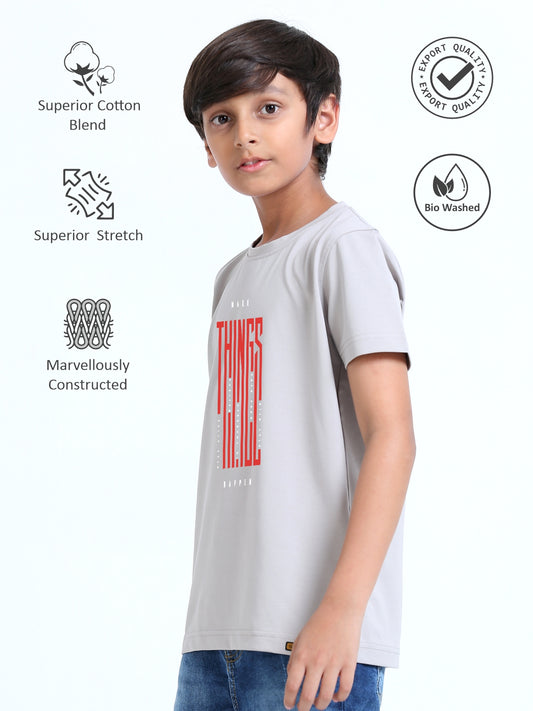 Moose Grey-Make Things Printed Crew Neck T-Shirt