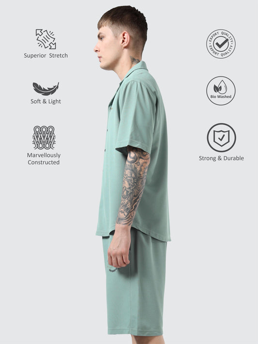Men Relaxed Fit Co-ord Set Misty-Green | Wrinkle Free | Stretchable | Feather Touch Feel | Breathable
