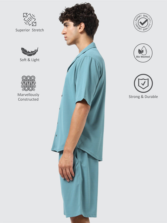 Men Relaxed Fit Co-ord Set Nile-Blue | Wrinkle Free | Stretchable | Feather Touch Feel | Breathable