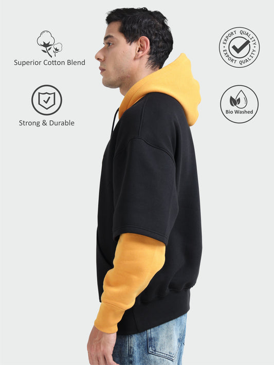 Men Oversize Layered Sleeve Hoodie - Feather Touch Feel | Sustainable | Breathable | Warmth