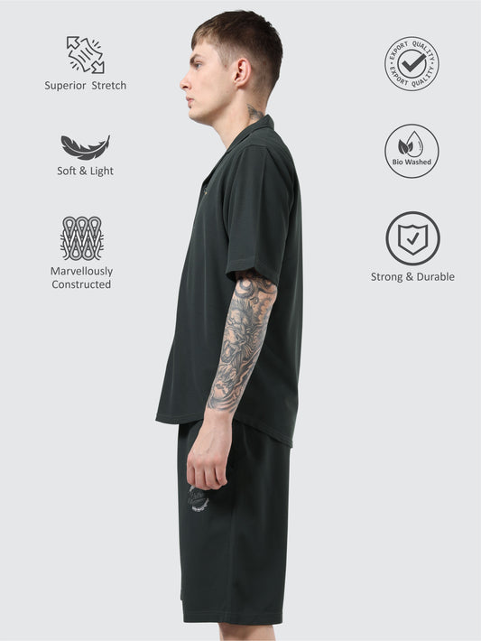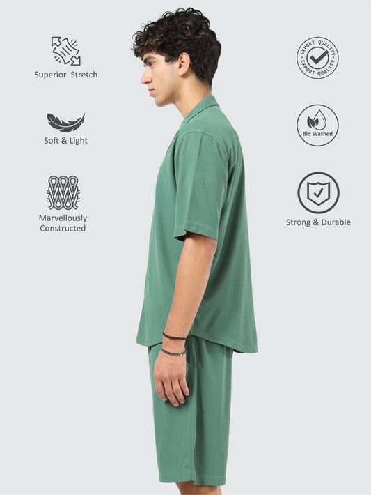Men Relaxed Fit Co-ord Set - Green | Wrinkle Free | Stretchable | Feather Touch Feel | Breathable