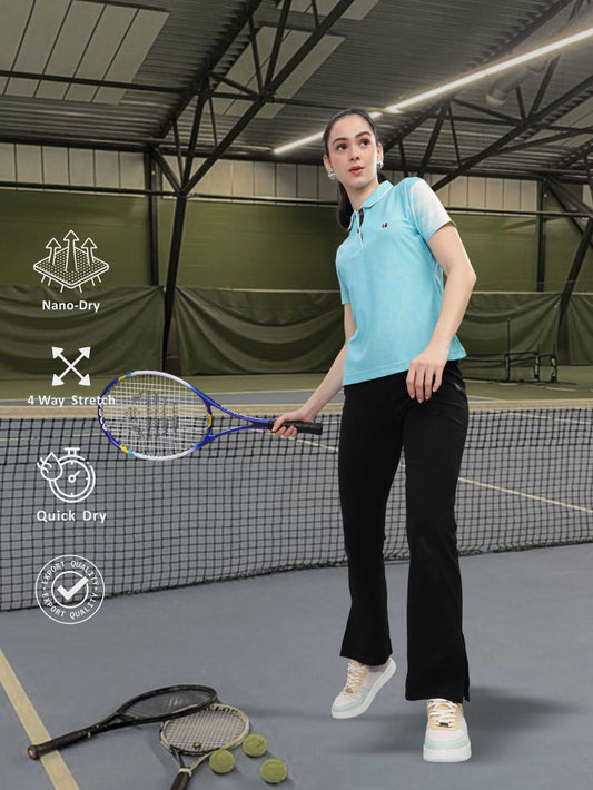 Turquoise Blue Women Active Wear Polo T-shirt