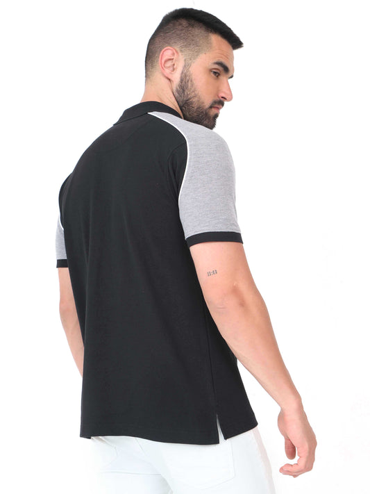 Men's Black Color Block Polo T-Shirt | Wrinkle-Free | Quick Dry | Stretchable | Odour-Free | UV Protected