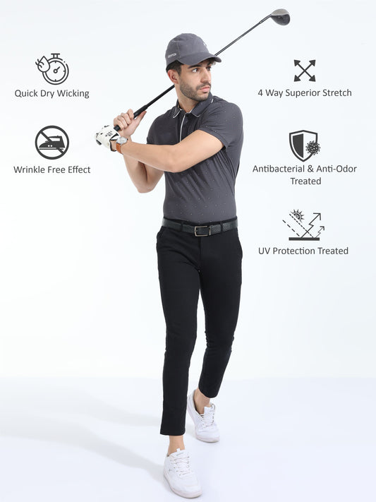 Black Men's Jacquard Collar Polo T-Shirt | Quick Dry | Stretchable | UV Protected | Wrinkle & Odour-Free