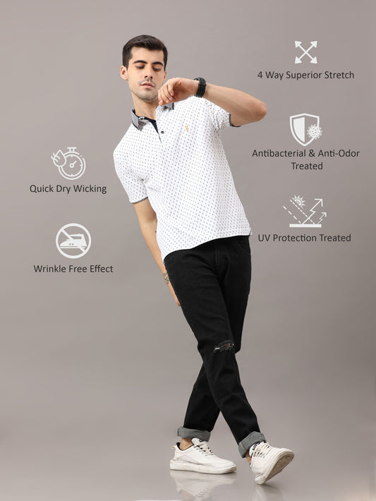White Men's Ant Print Golf Polo T-Shirt | Quick Dry | Stretchable | UV Protected | Wrinkle & Odour-Free