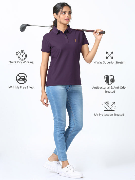 Men Black Currant Premium Golf Polo T-Shirt | Quick Dry | Stretchable | UV Protected | Wrinkle & Odour-Free