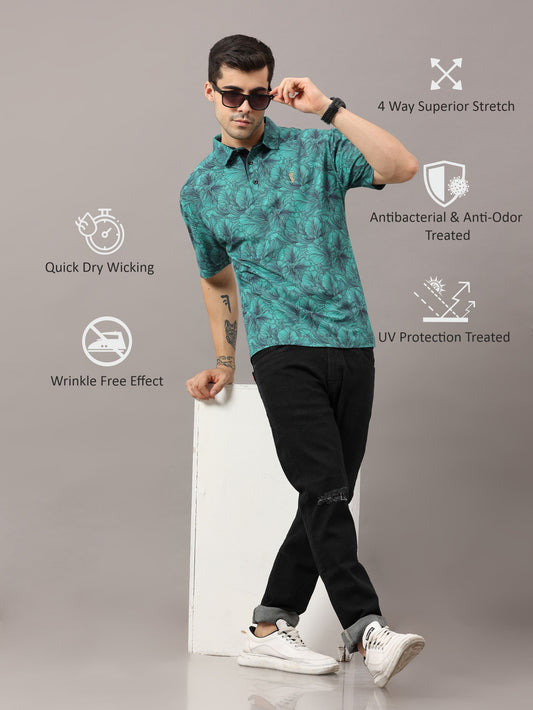 Siemens Green Men's Floral Print Golf Polo T-Shirts | Quick Dry | Stretchable | UV Protected | Wrinkle & Odour-Free