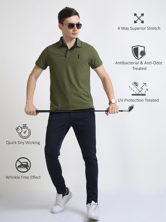 Olive Green Men's Rolex Print Polo T-Shirts | Quick Dry | Stretchable | UV Protected | Wrinkle & Odour-Free