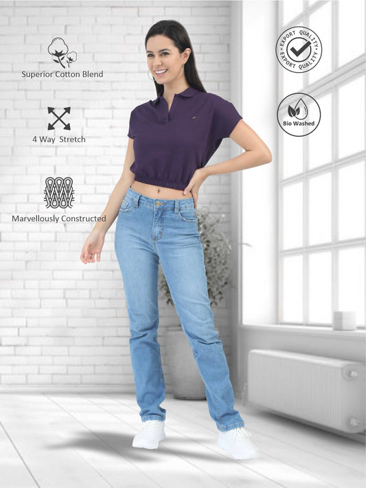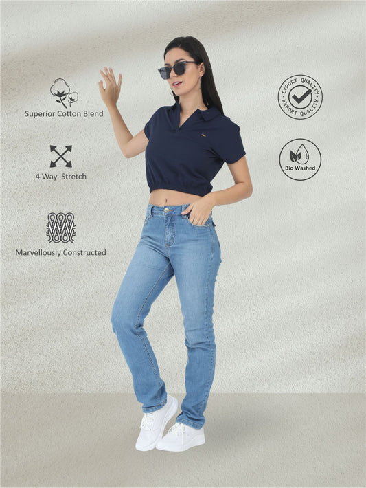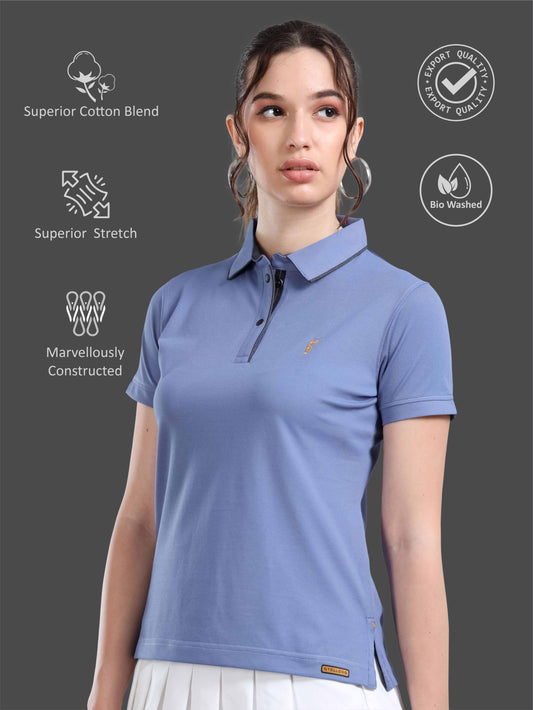 Denim Blue Women Premium SoftBerry PQ Polo T-Shirt