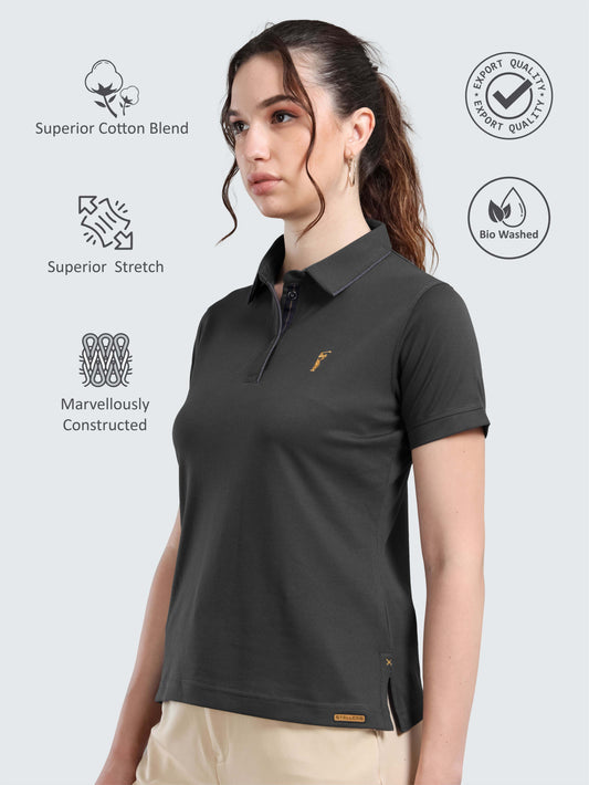 Grey Women Premium SoftBerry PQ Polo T-Shirt