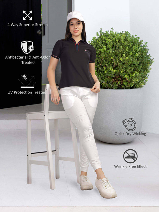 Black Women's Jacquard Collar Golf Polo T-Shirts