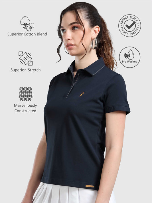 Navy Blue Women Premium SoftBerry PQ Polo T-Shirt