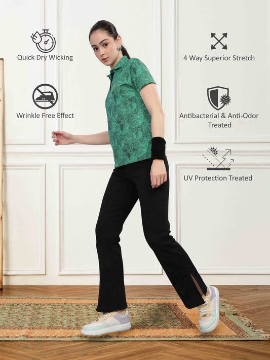 Siemens Green Women's Floral Prints Polo T-shirt