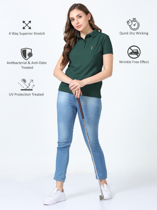 Teal Green Women Premium Golf Polo T-Shirt