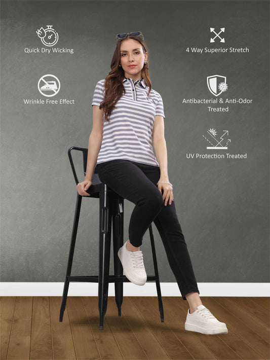 White-Women's Jacquard Collar Golf Polo T-Shirts