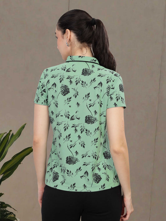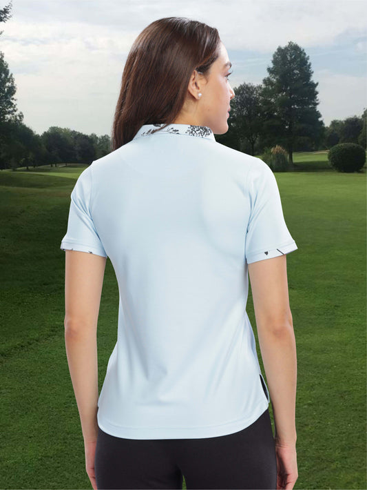 Ice-Blue Women's Jacquard Collar Golf Polo T-Shirts