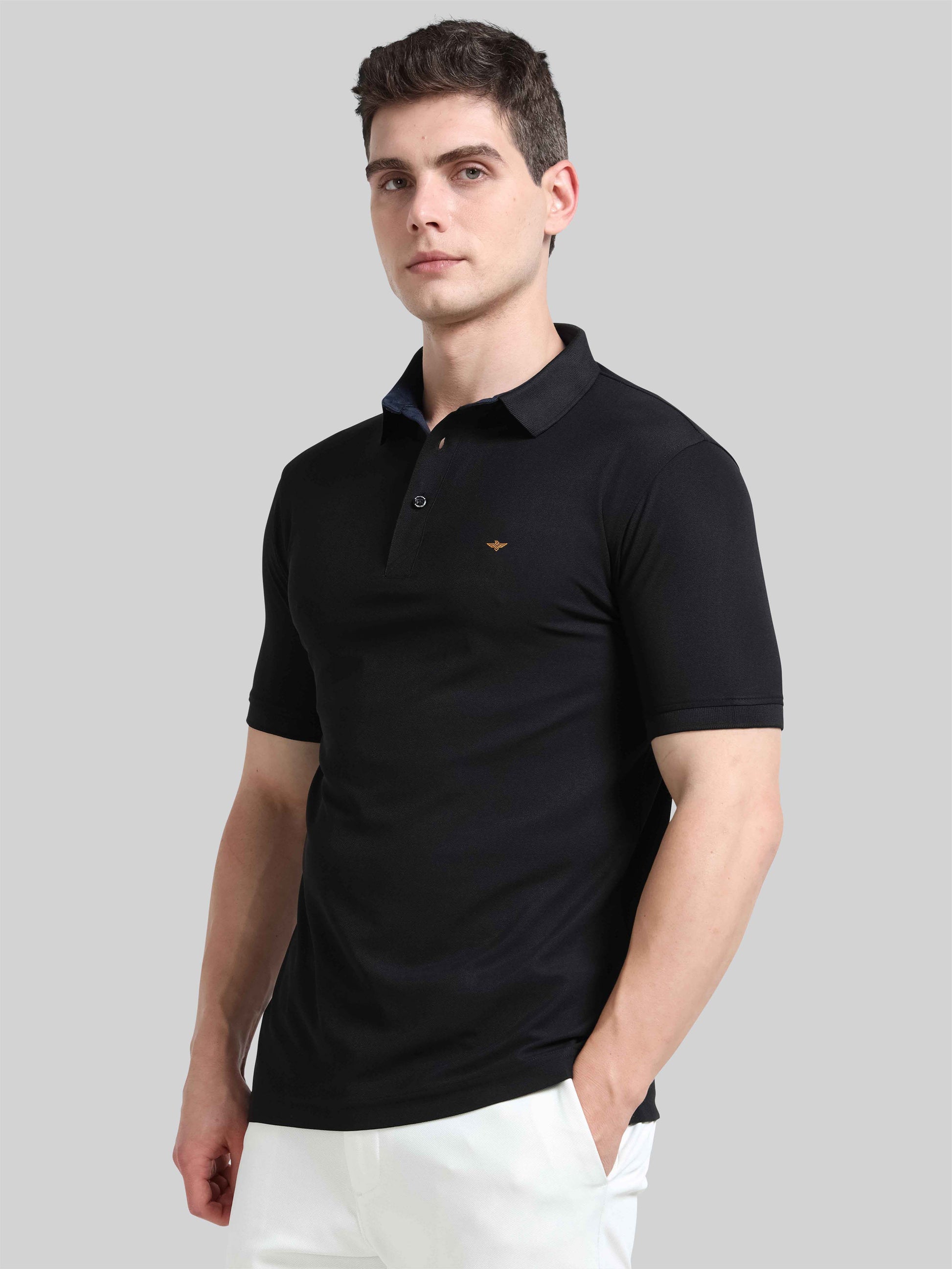 Men Black Premium Polo T-Shirt | Quick Dry | Stretchable | UV Protected | Wrinkle & Odour-Free