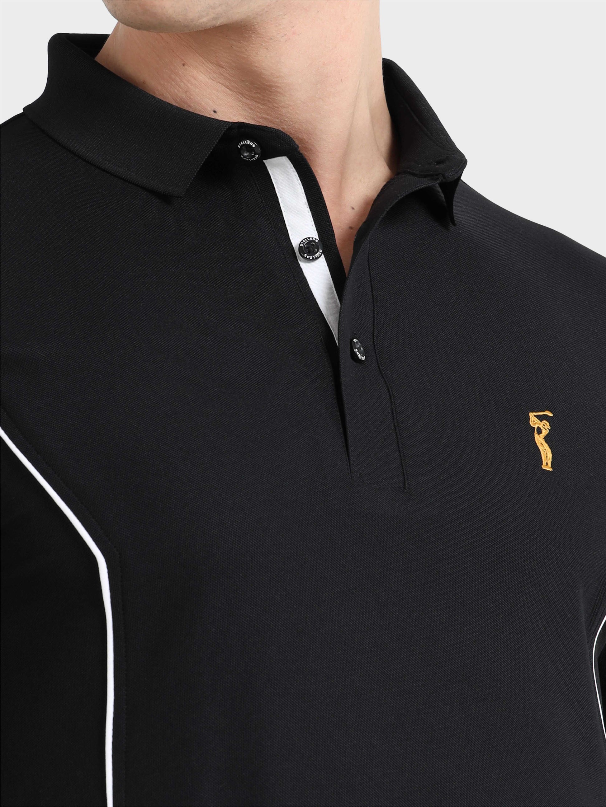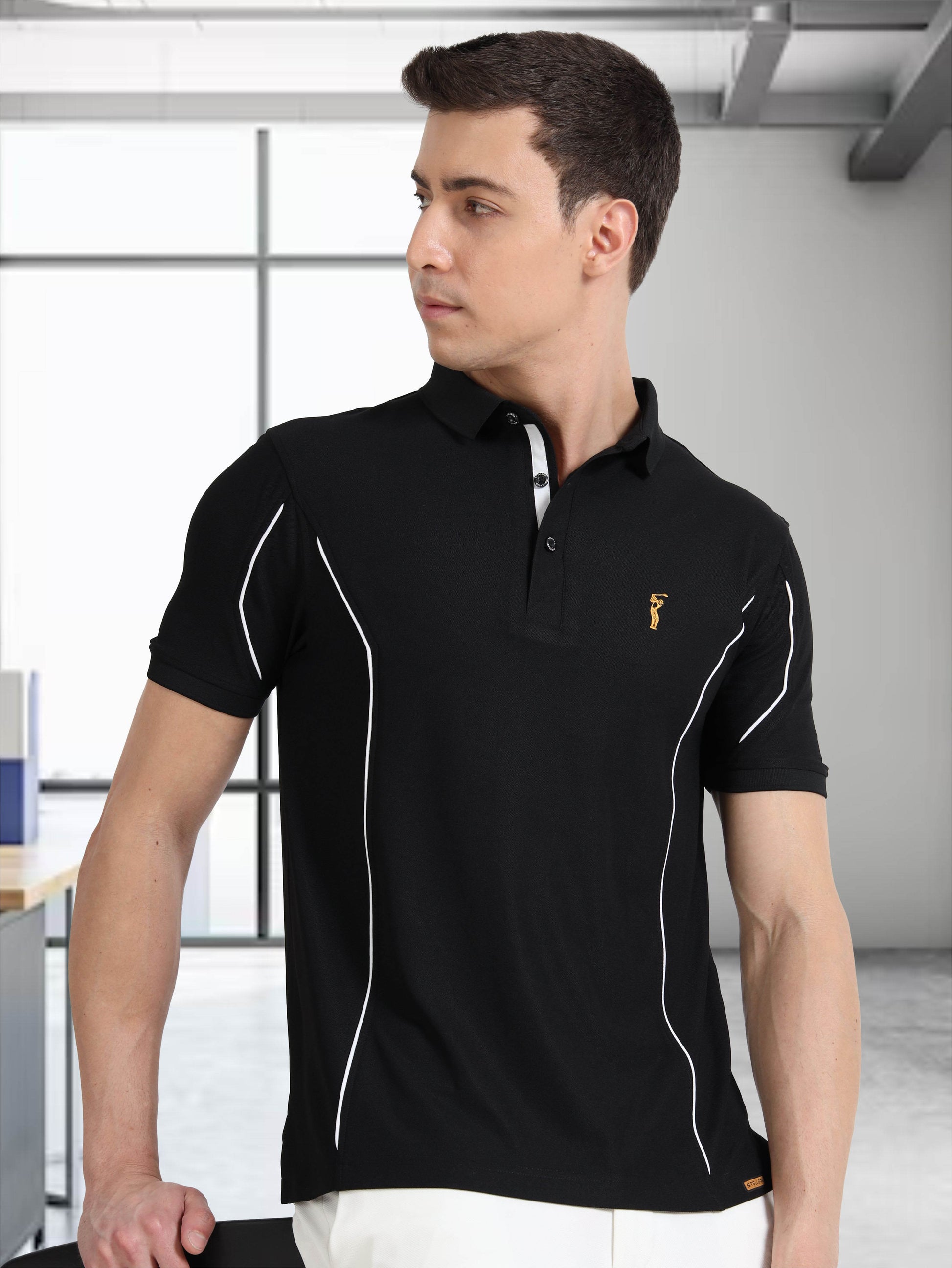 Black-Men's Piping Design Polo T-Shirt | Wrinkle-Free | Quick Dry | Stretchable | Odour-Free | UV Protected