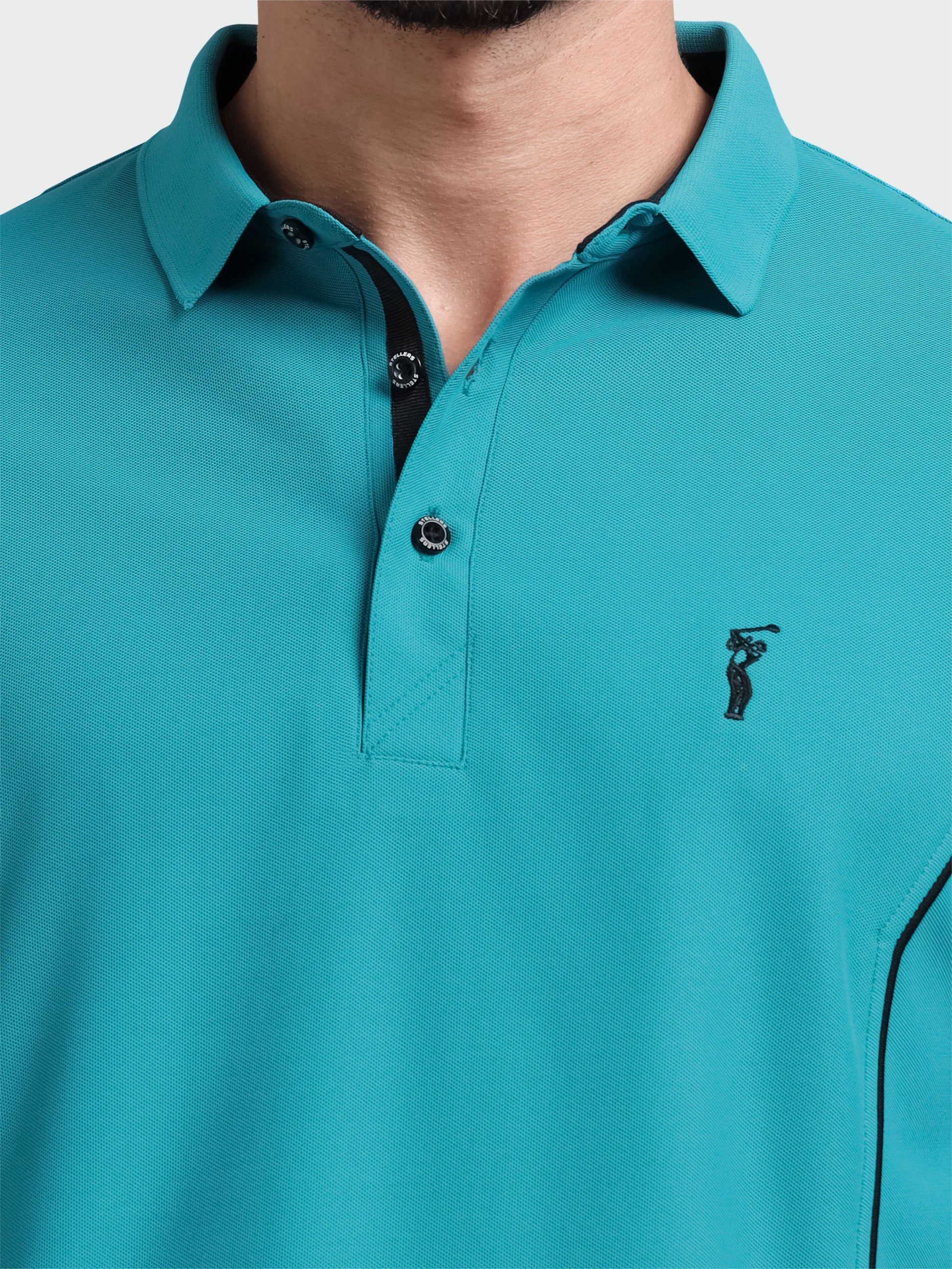 Jade Green - Men's Piping Design Polo T-Shirt | Wrinkle-Free | Quick Dry | Odour-Free | Stretchable | UV Protected