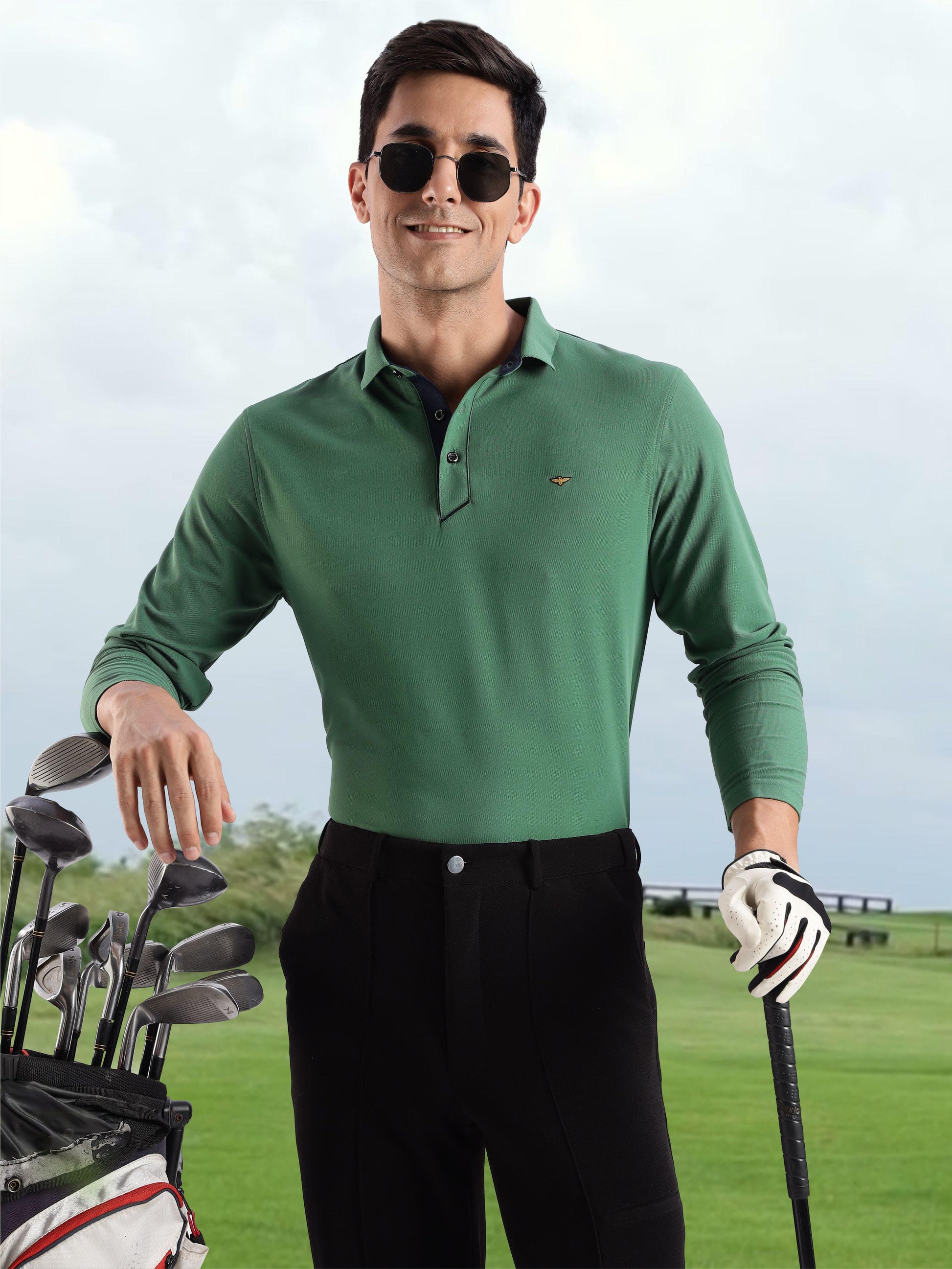 Men's Apple Green Full Sleeve Polo T-Shirt