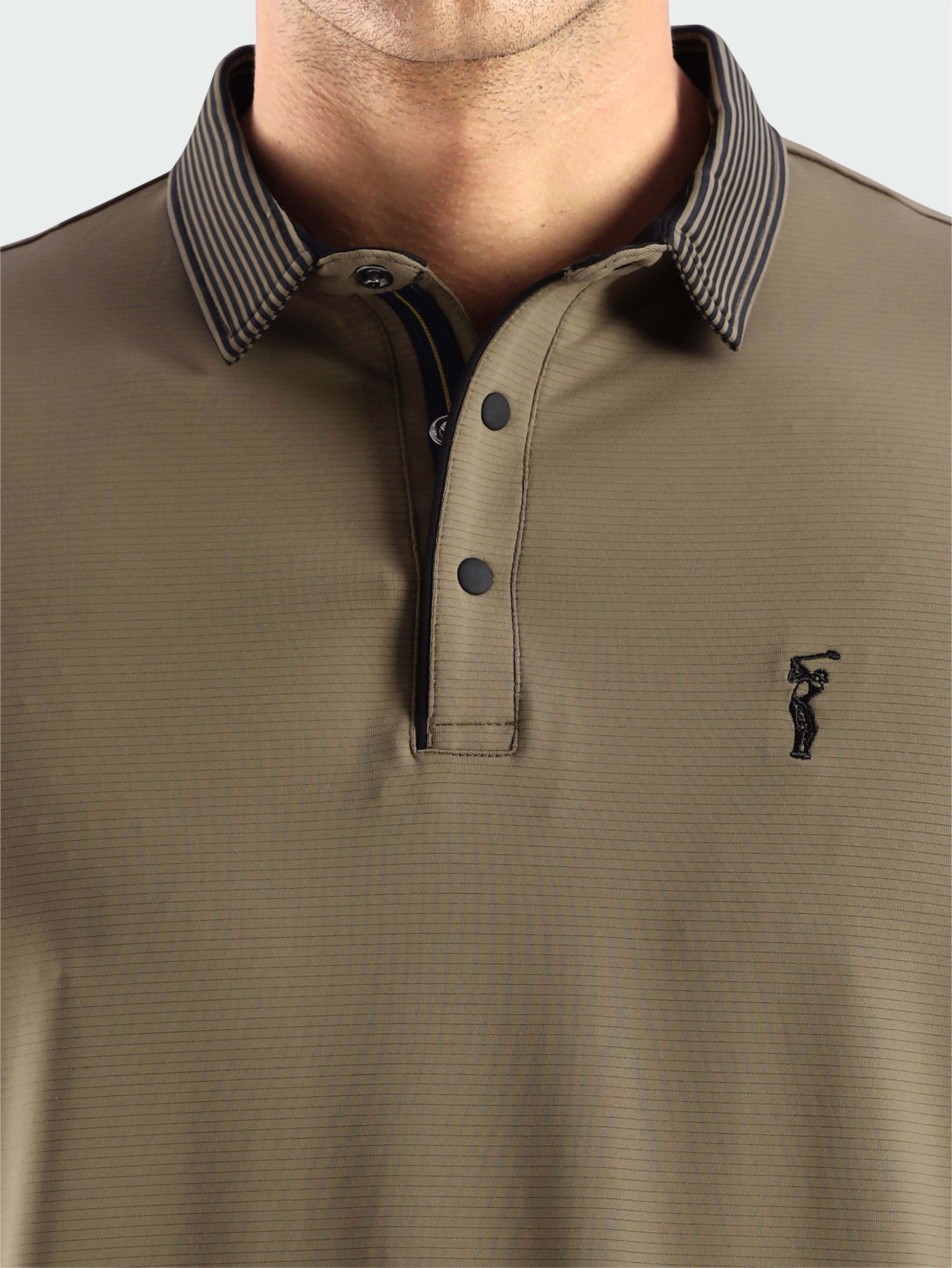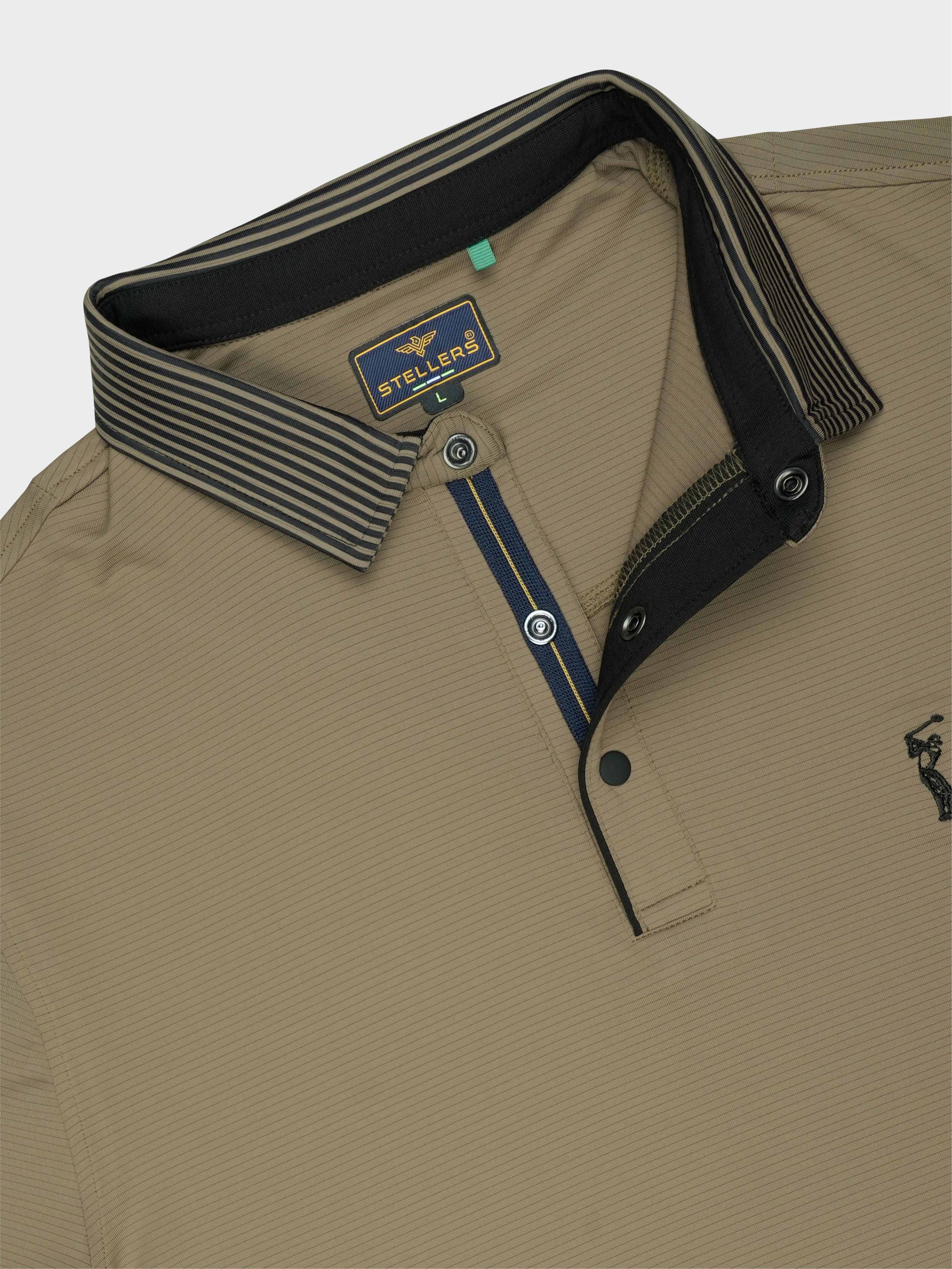 Earn admiration for your rich sense of style by wearing this Premium polo t-shirt from STELLERS. The unique stripes knit pattern and contrast stripes collar add a refined, premium touch, while the polished snap button closure enhances sophistication. Featuring an embroidered golfing man logo, Flaunting half sleeves, it showcases fine craftsmanship. This polo ensures all-day comfort with its lightweight, breathable, and stretchable construction. With a classic fit, A versatile, timeless essential for the modern man—perfect for office casuals, golfing, and evening wear. Pairs effortlessly with any bottom for a timeless, premium, luxurious sophisticated look.it will surely keep you updated with the latest trend.